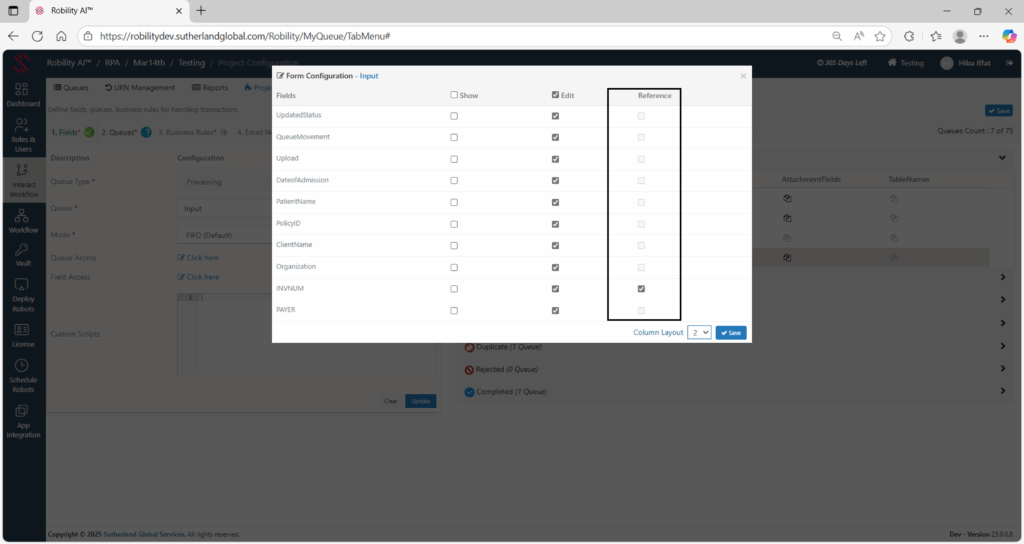 For all existing projects, the Reference field is already available in the Queues section. To implement duplicate handling in current workflows, business rules must be configured properly.
