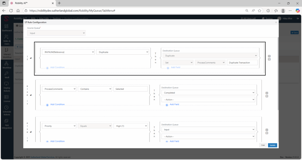The Reference Field is a key feature in the Interact module designed to uniquely identify transactions within a queue. Its primary purpose is to detect and manage duplicate entries automatically. By comparing the reference values across transactions, the system ensures that the same transaction is not processed multiple times, reducing errors, improving efficiency, and maintaining data integrity during automation.