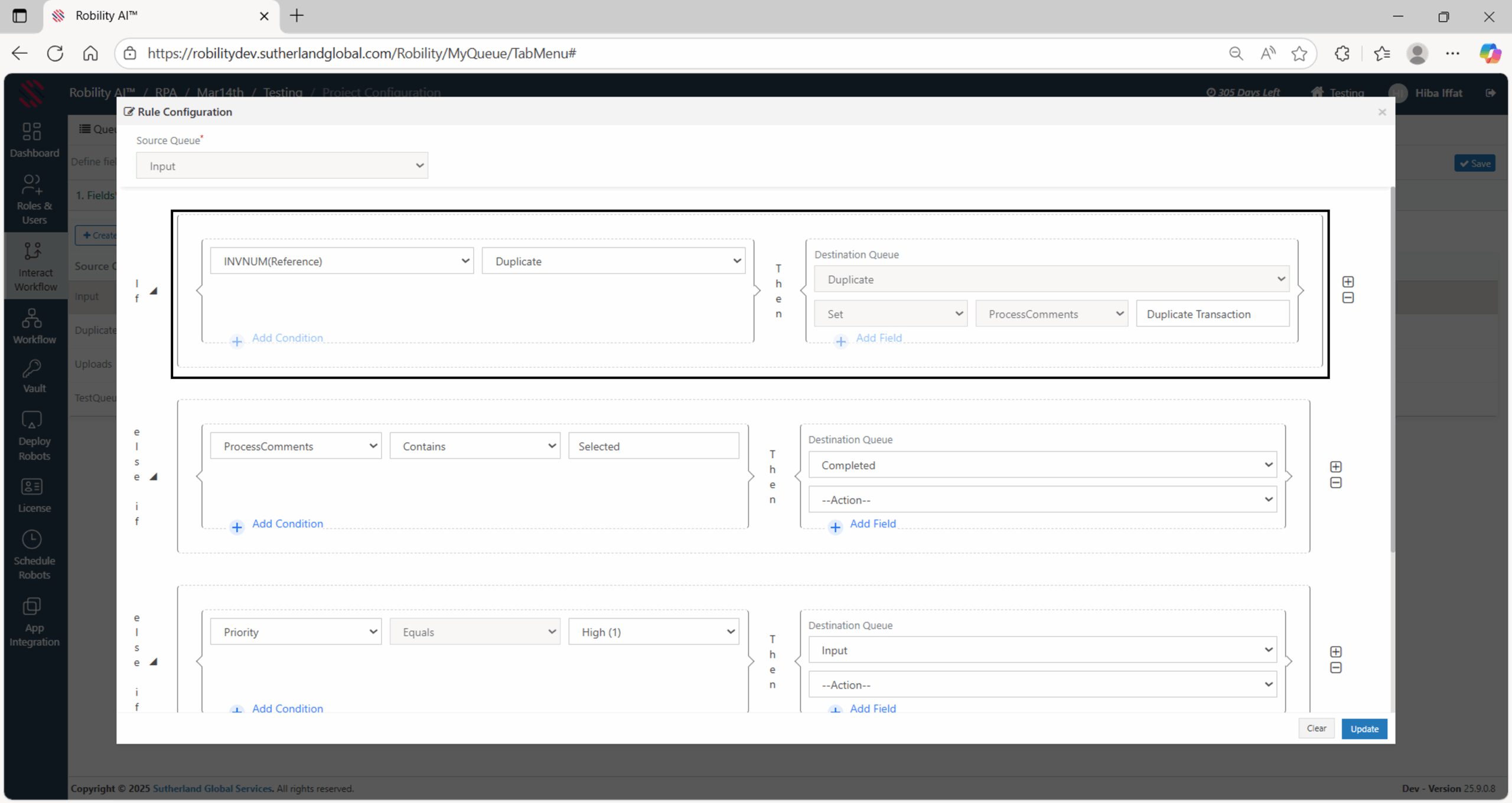 This feature is particularly useful for workflows handling high-volume transactions, where manual tracking of duplicates is not feasible. It also provides a structured mechanism for users and bots to manage duplicates by moving them to a designated queue for review.