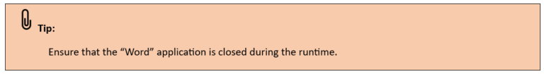 Read Text: It returns the output of the activity as the text extracted from the specified word document. It returns the output in “String” datatype.