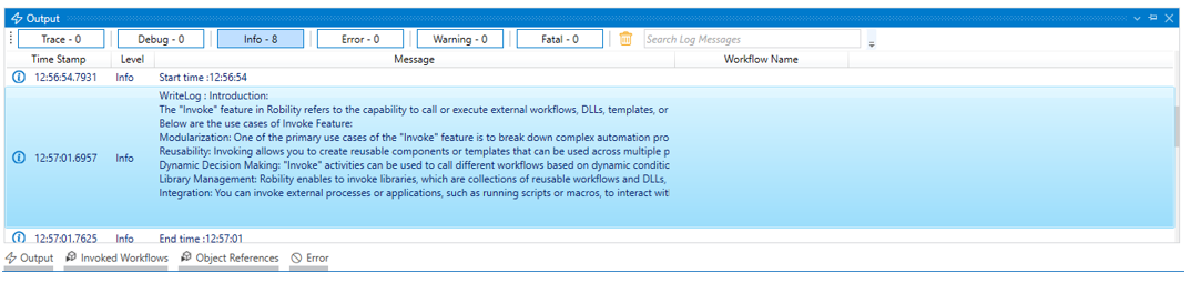 5.You can add a write log activity next to the “ReadText” activity to view the output.