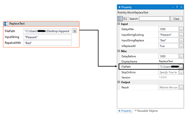ReplaceText:* This parameter specifies to provide the new “input” text which needs to be replaced in the specified input word document. You can either hardcode the values in the “String” variable or pass the values as “String” datatype. This parameter accepts values in “String” datatype.